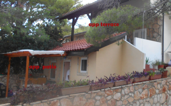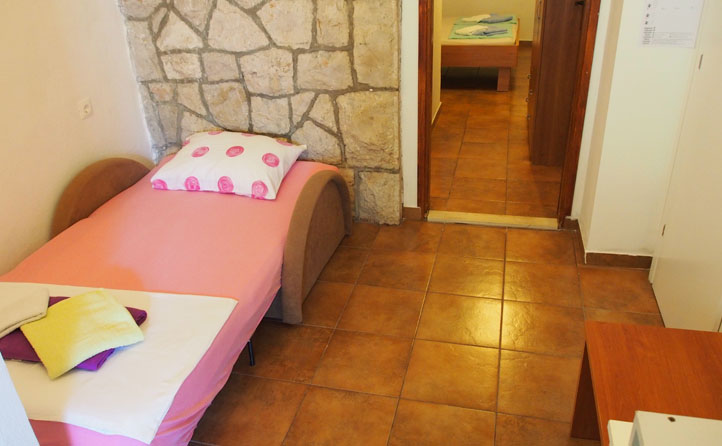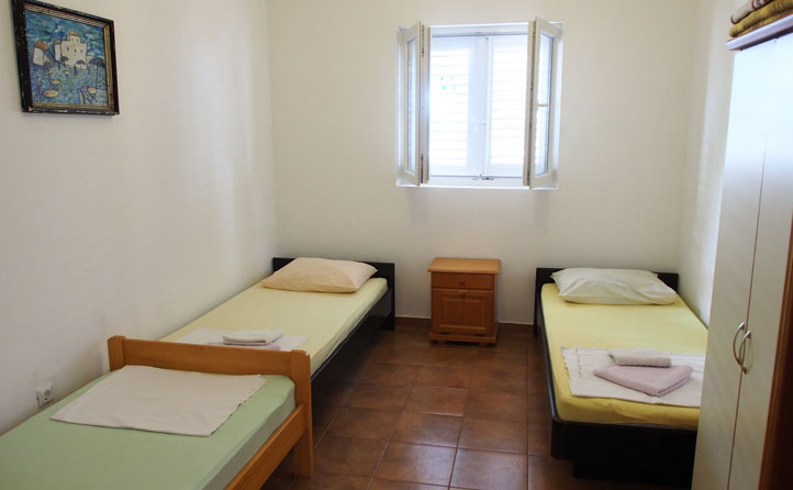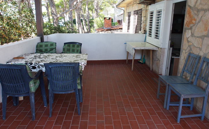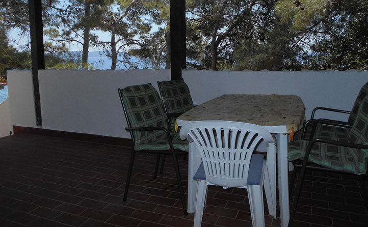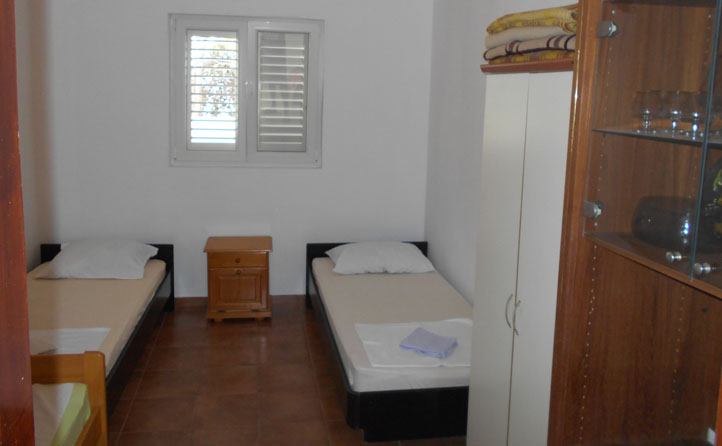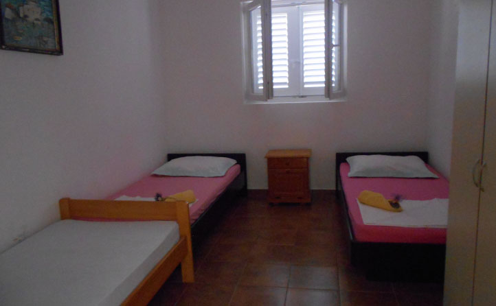 Apartment with terrace is only 15 meters from sea with spacious terrace and beautiful sea view. It has two bedrooms, bathroom and kitchen. In bedroom 1 is big bed and in bedroom 2 are 3 single beds. Living room with kitchen is equipped with sofa for one person or 2 small children. Apartment with terrace can accommodate maximum 6 adult or 5 adults and 2 children. Free wi fi and 2 air conditions are available and reserved parking is just 20 meters from apartment.